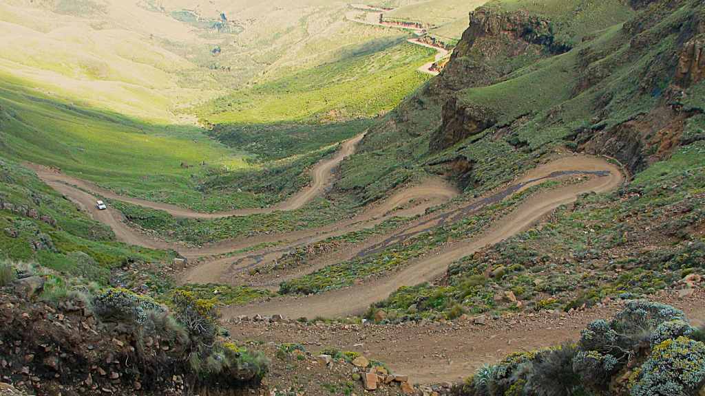 Sani Pass is a mountain pass situated in the western part of KwaZulu-Natal, South Africa, along the road connecting Himeville, KwaZulu-Natal, and Mokhotlong, Lesotho. The pass crosses the Great Escarpment of southern Africa in its highest region, the Drakensberg Mountains, which rise to over 3,000 meters in elevation. It has to be done in a 4×4 vehicle. It can be scary but the views are spectacular.