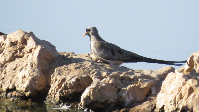 At Dertiende Boorgat (Thirteenth Bore Hole) we watched the little quelea,sparrows, finches and doves swarm down to the water and up again into the trees while a lanner falcon flew over. They are expert bird catchers but didn’t try their luck this morning.