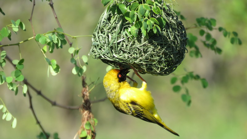 Mrs Weaver is looking for her mate – I need more softness to line the nest, she tells her husband.