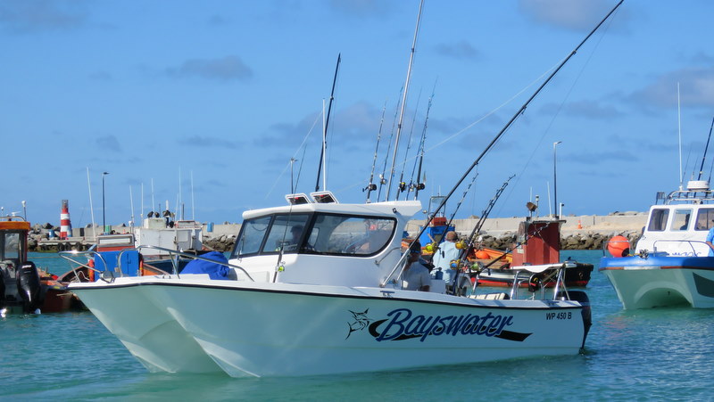 The Two Oceans Marlin Tournament runs from Sunday to Friday and seldom do the anglers get to fish every day as the weather is so changeable. This year, however, the forecast predicts that every day will be a suitable fishing day. Going to sea every day is exhausting and one would thing that the anglers would like at least one day to be declared a rest day. But, after a democratic vote 14 out of 22 declared that no rest day would be necessary and so unless there is an unexpected change in conditions the anglers will go to sea each of these six days! South African anglers are a hardy lot!