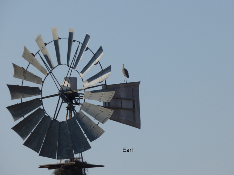 We caught up with Alec and Cathy at one of the waterholes. They had found kori bustards but they were quite far away. The Earl got an amusing photo of a windmill and a heron.