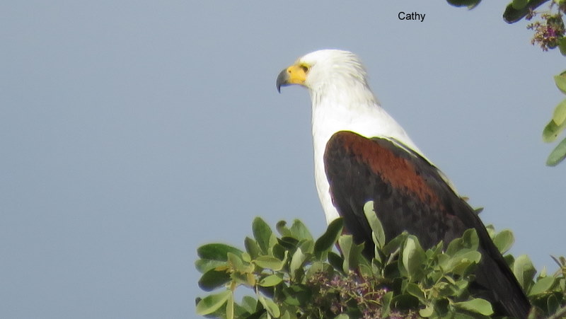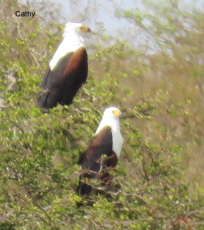 Listen do you hear that? It’s a fish eagle and there she is. You’ll need to look through your binoculars