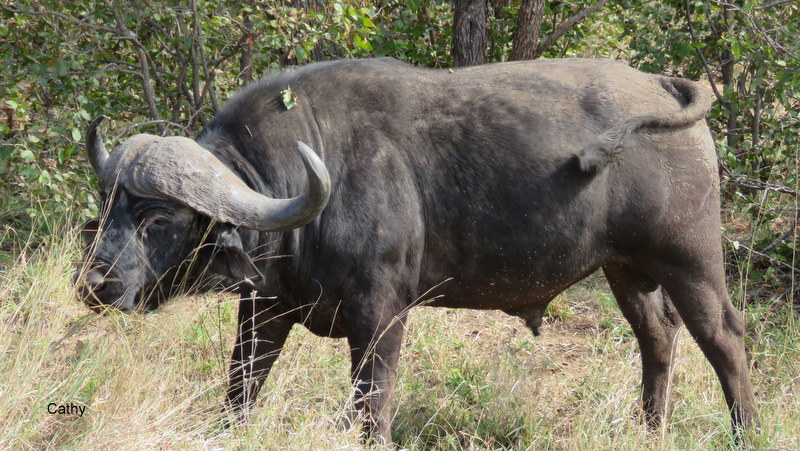 Wow, the tar road is finding us more animals. Alec has stopped up ahead. He’s seen a buffalo.