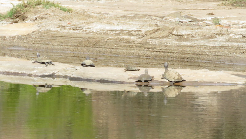 Look over there. Terrapins sunning themselves on the flat rocks.