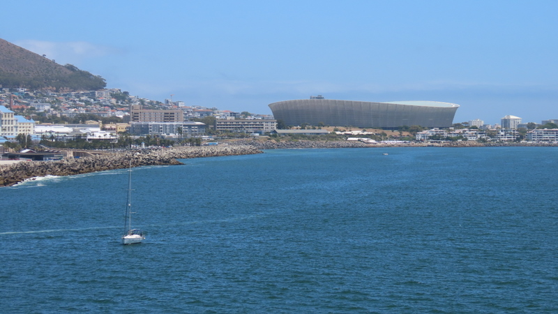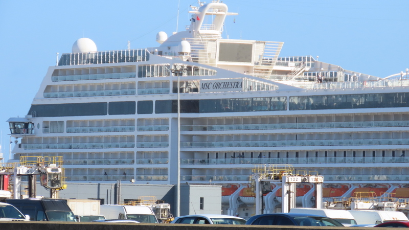 Originally our boarding time was set for 11:30 am but because of expected high winds, we were all asked to come two hours earlier than our given times. This was not possible for a few as they could not change their travel arrangements. For this reason, we are now anchored in Table Bay, and those passengers who could not make it are being collected in Life Boats and will join us soon. Cape Town Harbour’s entrance is very narrow making it difficult and dangerous for a ship the size of MSC Orchestra to get through it and out to sea.