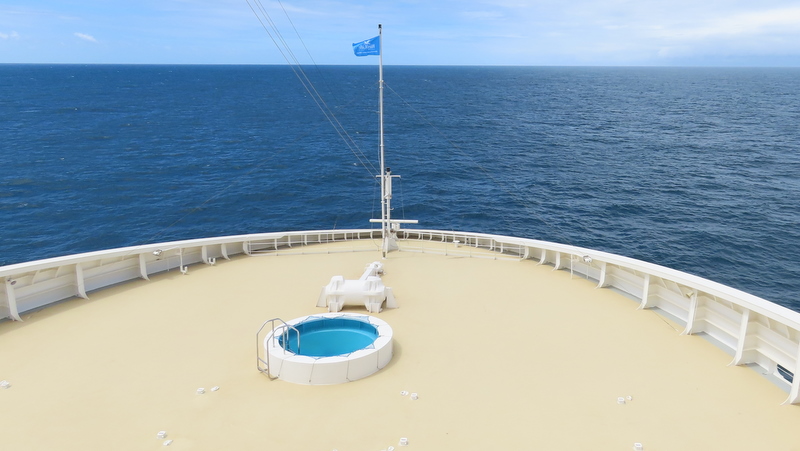 The bird watching was fun and we were really lucky with the weather. The first three days were sunny but the closer we got to the Prince Edward Islands the colder it became. However, it was not as cold as expected and I was comfortable on deck in jeans, boots, a long-sleeved T-shirt, and a puffer jacket. It rained a bit but not continuously and when it did the Earl and I watched the birds from our cabin. We even sat out on the balcony when it was dry. The sea was quite rough at times and walking in a straight line was difficult! The roaring forties were not as scary as I expected.