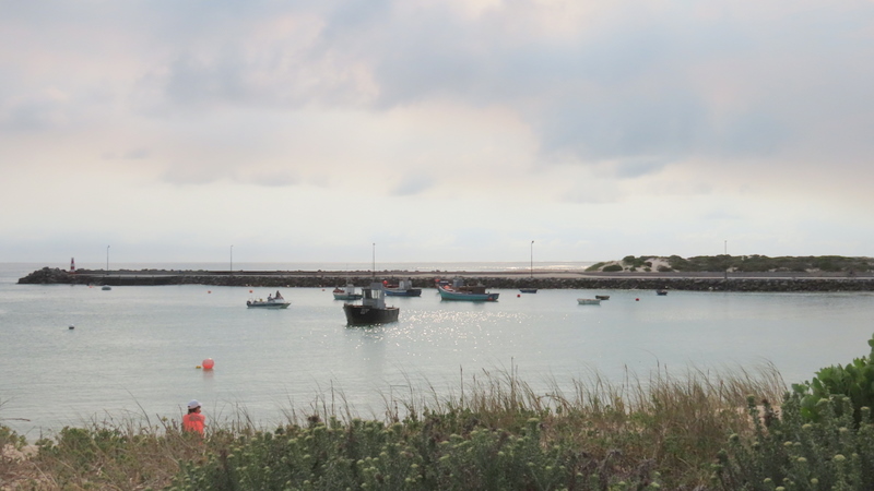 Thirty-three boats of varying sizes with between 3 and 6 excited crew members onboard launched early this morning for the first day of this much anticipated annual, Struisbaai event. Weather conditions were favourable starting with overcast skies, little wind but the slightly choppy sea made the ride out to the 12 mile bank a tad uncomfortable. My good intentions of photographing some of the boats launching came to naught as the eager skippers made sure they were out there before competition with the chuckies prevented them from getting to the fishing grounds before lines in at six o’clock. I did, however, on my walk with Andrew’s dog, Roo, get one or two lovely photos of our beautiful harbour and one of the competitors took a pre-dawn photo too.
