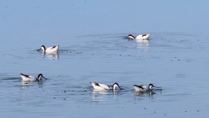 Pied Avocets contentedly swimming