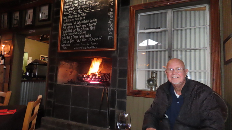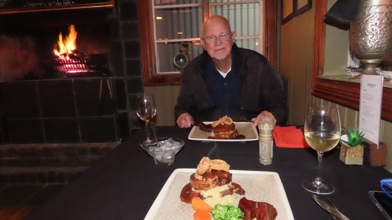 We went to Transkaroo for dinner and it was awesome.  They had a fire going and the menu was great.  We both chose pork belly on mash with crackling and vegetables.  It was delicious.