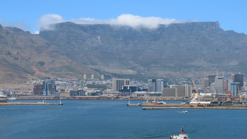 This view of table mountain was taken in January 2022 from aboard a cruise ship, MSC Orchestra