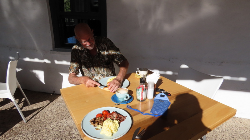 A great place to visit and meet friends is Noordhoek Farm Village which has a few novel shops and eateries. The Food Barn is very popular and on Monday morning we were there just after opening time at 8 am and it was already quite busy. The Le Petit breakfast was more like a Le Grand breakfast. The menu declared that you would get one egg, any style, bacon, mushrooms and grilled tomato. Well, it must have been a very large chicken that laid that egg – or perhaps it was an ostrich! Three slices of bacon and six rosa tomatoes plus a portion of mushrooms – all totally delicious. I could not clean my plate!