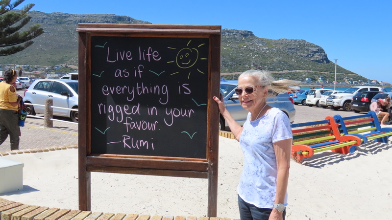 I grew up in Fish Hoek and didn’t live far from there for most of my adult life. The beach was my playground and it was a huge part of my children’s and grandchildren’s lives too. It holds many wonderful memories. So of course a visit to the beach was compulsory. Near the entrance is a chalkboard and my cousin writes inspirational memes on it almost every day. Take a look at Chalkboard on the Beach on Facebook