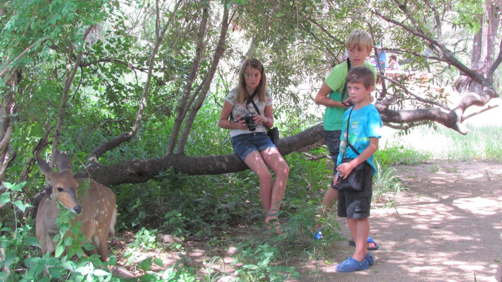 When our grandchildren were 7, 10, 14 and 15, we took them to Kruger National Park for the first time. This turned out to be totally amazing. We played game spotting games to keep their interest peaked but found that having four of them really worked well. The cousins got on super-well and the older two boys kept the younger two eager, engaged and entertained while travelling in the car as well as the time spent at the campsites. We have taken them on holidays since then but that one was certainly the best as seeing their delight at each sighting gave us more pleasure than seeing the creatures ourselves.