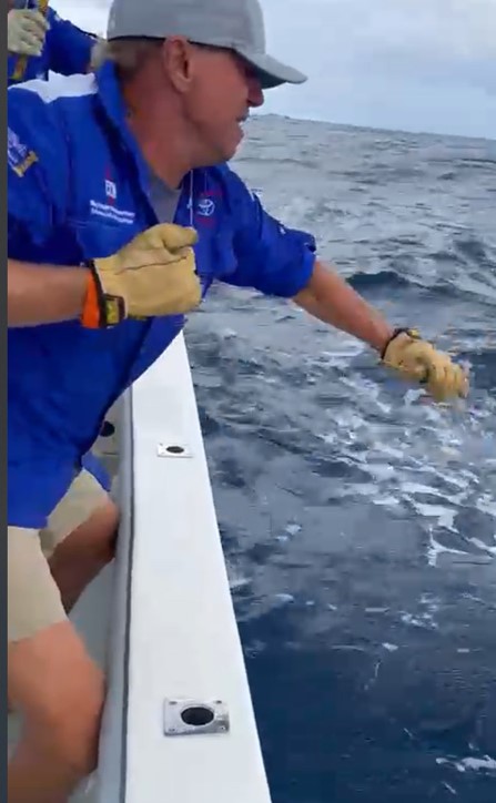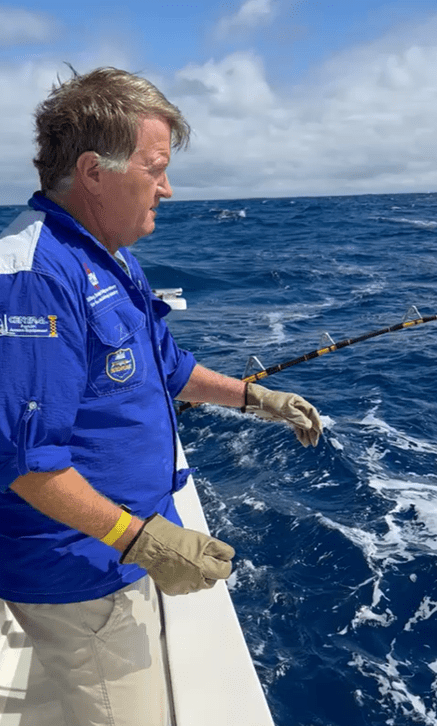 Indigo almost got another but lost the battle and just when we thought the day was over Bayswater called in and after a short battle brought in a blackie. I was unable to get a good fish clip from their video so will just show you the angler.
