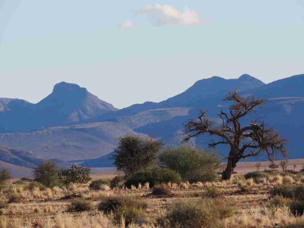 We have now reached the end of our first week in Namibia. Have we enjoyed ourselves so far? The answer is a resounding yes! The beauty of the Southern Namibian landscapes is fantastic. The colours that mix so well together. The magnificent blue sky that stretches forever, the red dunes, the golden grassy plains, the chocolaty mountains, the bright green tree canopies of the trees that march in almost straight lines along water courses, the pinks and oranges of the sunrises and sunsets, and the silence broken only by bird calls. Magnificent.