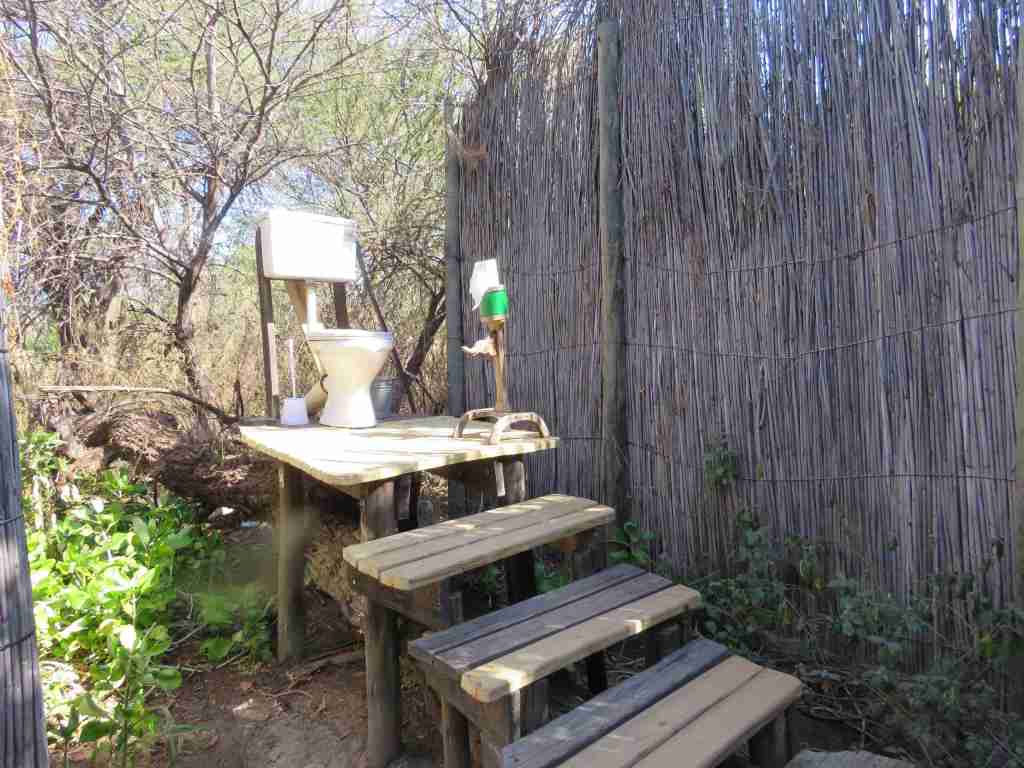 The ablutions at Ngepi were a sight to behold. The loos and showers are unisex and built with reed walls. There was no door as such, just a pole across the entrance. If the pole was up, then someone was in there and if it was down, well just go on in! The loo was placed on top of a platform that was reached by four steps. Great fun in the daylight, but not so much when it was dark. There is just solar lighting which gave little or no light so a torch was a necessity!