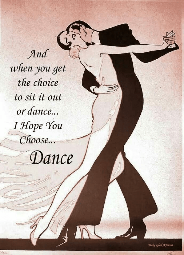 I can dance with my husband because he leads very well and we just get into the rhythm and do our own thing. If our song, Lady in Red, is playing, we get up and dance whether there’s a dance floor or not.