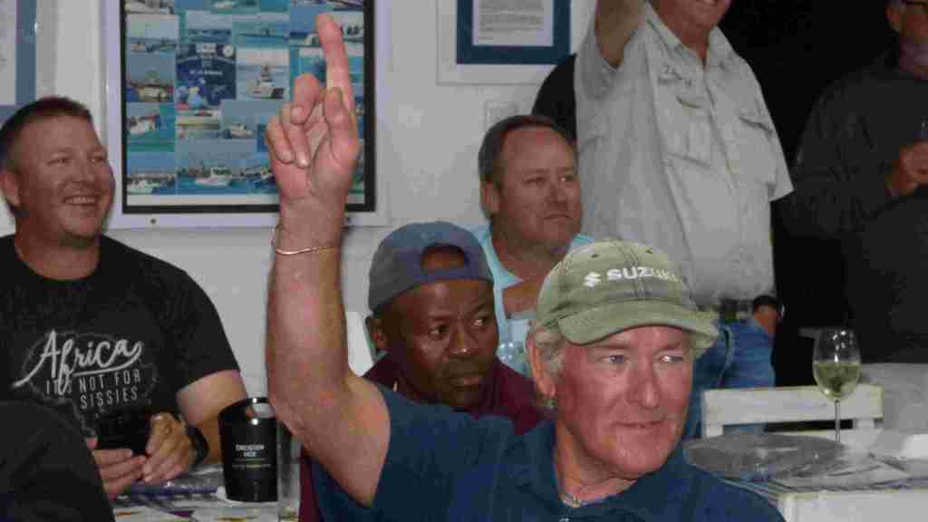 Sadly the inclement weather of high winds and rain prevented the anglers from going out to hunt more marlin today. Friday will be no better so the competition is over bar the celebrations. Hereunder is the report of Thursday night’s auction and on Friday the prize-giving will take place.