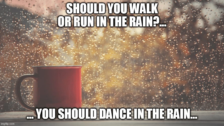 I know that if one is carefree and adventurous one is supposed to love walking in the rain but given the choice I’d rather not! I have walked in the rain many times. I have been mad enough to go jogging in the rain because I was so addicted to running that even the pouring rain would not stop me from going out. I don’t regret those days but I certainly wouldn’t walk or run in the rain today! Oh – it is raining here today and I did dash to the car in a shower, and it wasn’t so bad.