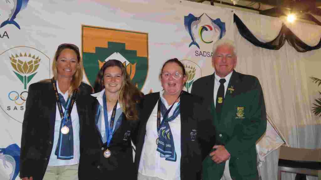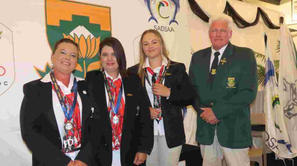 Jennifer Nelson, Mable Liebenberg, Sheena Gerber (captain) Chris Schorn – SADSAA President