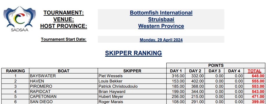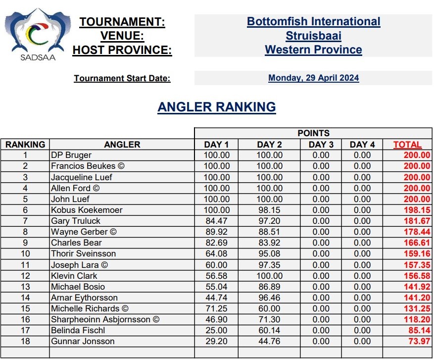 The International Angler with the third highest points was Protea Lady, Jacqui Luef, Second was SASACC’s Francois Beukes and First was Protea DP Burger