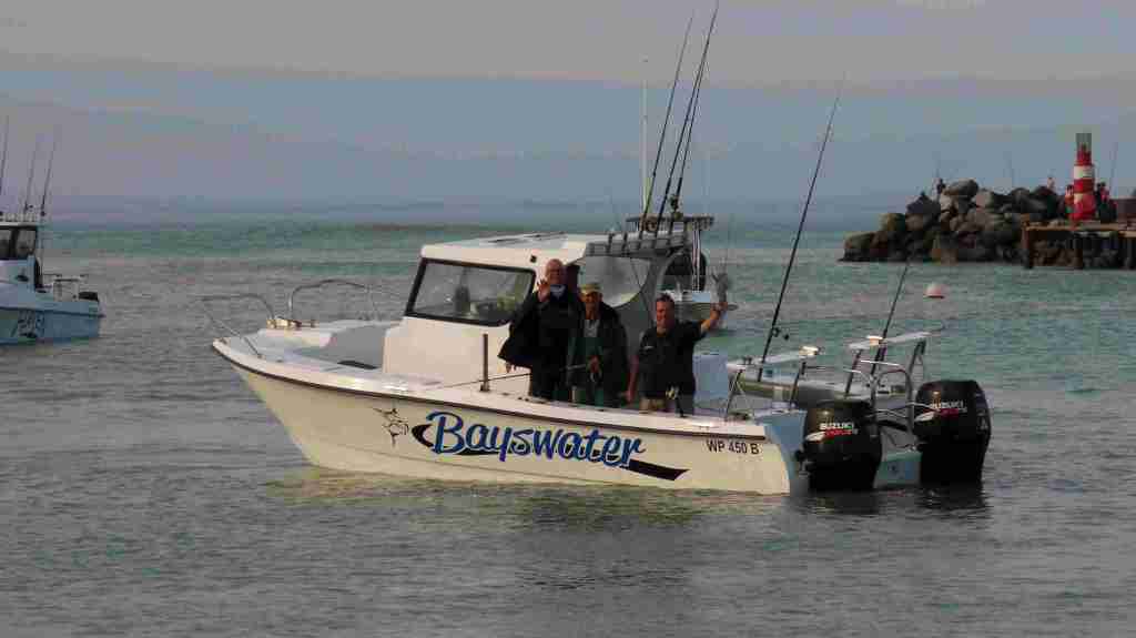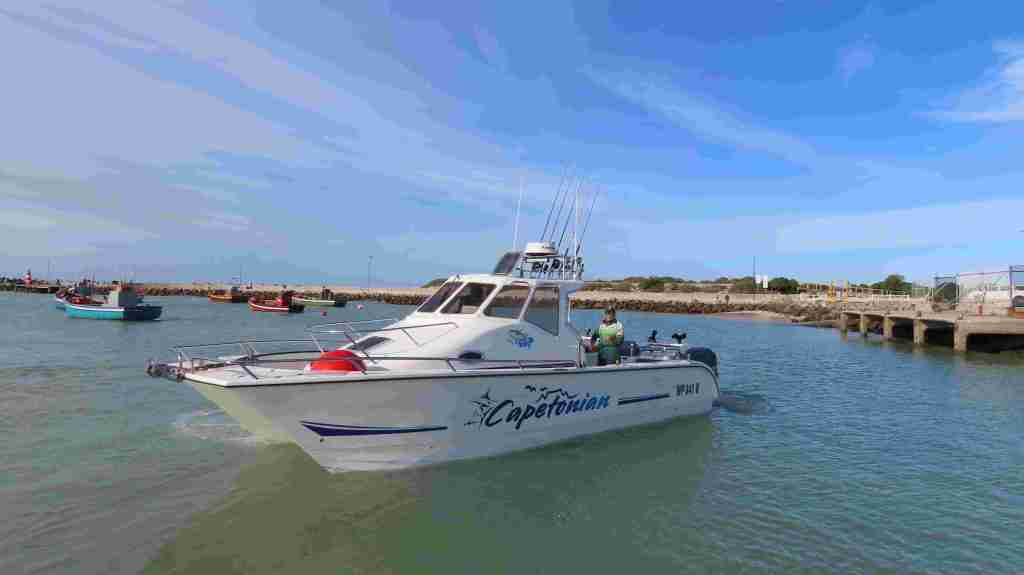 The boats started arriving at Struisbaai Harbour at 05:30. Take-away breakfast and coffee were served at the Struisbaai Harbour Cafe and there was an air of anticipation and excitement amongst the anglers as they collected their boat boxes filled with snacks for the day.
