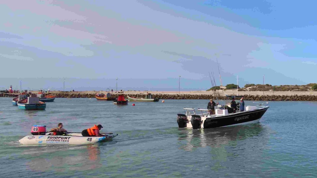 Lines up at 15:00 was called and I headed to the harbour to welcome the first returning boats. I became aware that a man standing next to me was slightly anxious. Rapidcat was the first boat to appear. The man called out to the skipper and told him that two young men on a rubber duck were having trouble with their motors and were stranded just opposite the last house at Langezandt. Brian asked me to inform his driver that he would be delayed and he raced off on a rescue mission. He also called SkiBoat Mobile to inform Andrew of the situation. It was just a short distance away and soon he reappeared towing the rubber duck with the two grateful young men on board.