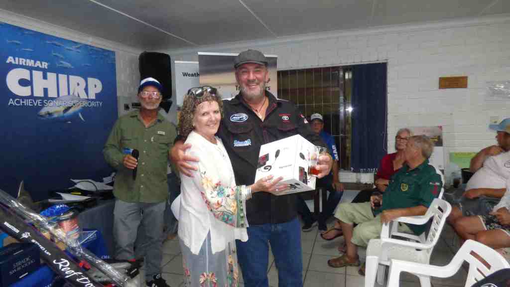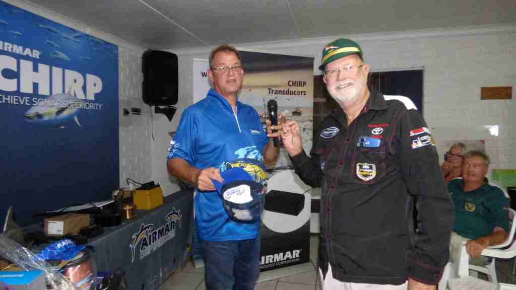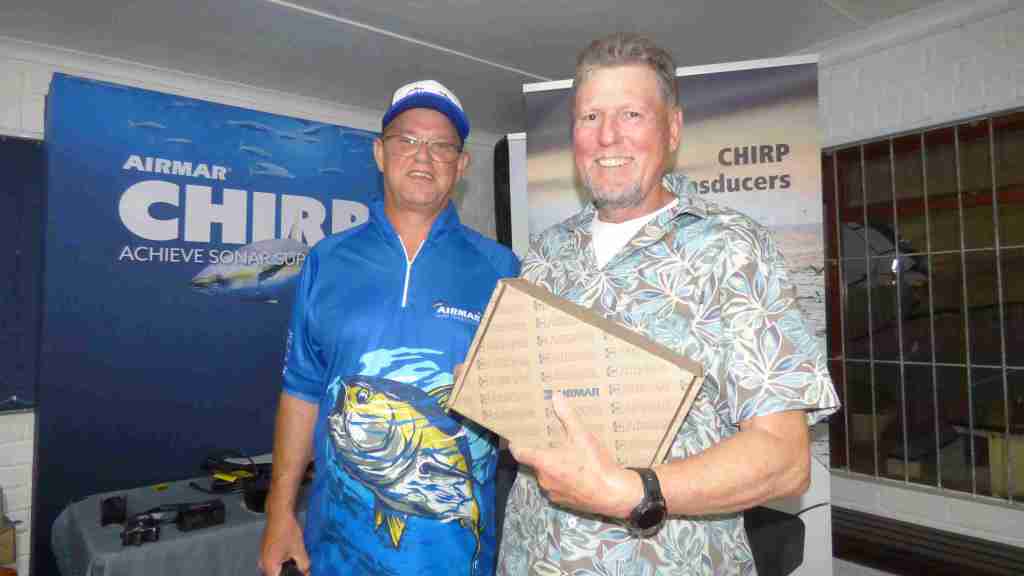 In the Anglers’ Goodie Bags, Airmar stickers were included. Two of them would be prize-winning stickers. All the skipper had to do was put it on his boat, take a photo and submit it for judging. Only Grant Creighton, Airmar representative, would recognise the two winning stickers, which he revealed at the final function and presented the prizes.