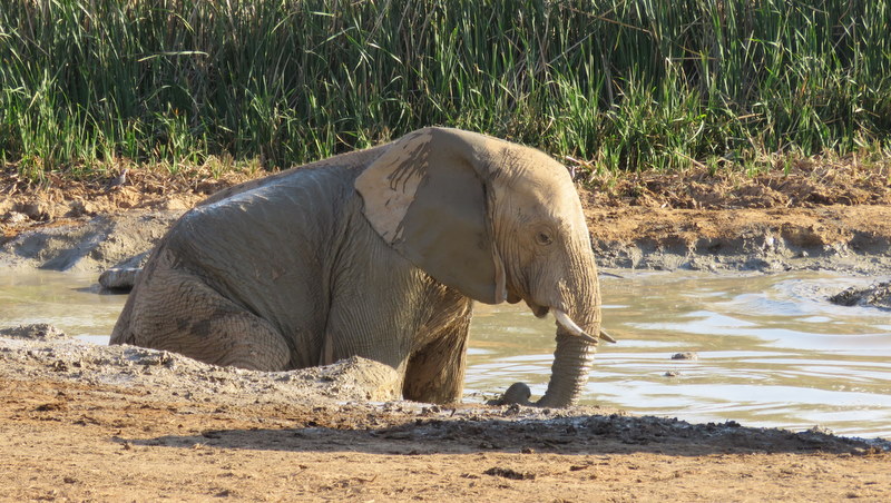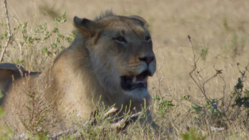 When we returned to camp at around 10 am it had warmed up quite a bit. We went to the Cattle Baron for breakfast. The Earl had an omelette, Simon had the Classic Breakfast – 2 eggs, bacon, mushrooms, pork sausage, rosti and toast and I had the Sunrise – 2 eggs, bacon, tomato and rosti. We also enjoyed their excellent Americanos and Cappuccinos. We then relaxed in camp till around 1 pm before going out again. There were lots of elephants dotted about the landscape but we were too late for the waterhole activities. We did not see anything new and decided not to drive around too much as tomorrow we will do the south of the park before exiting.