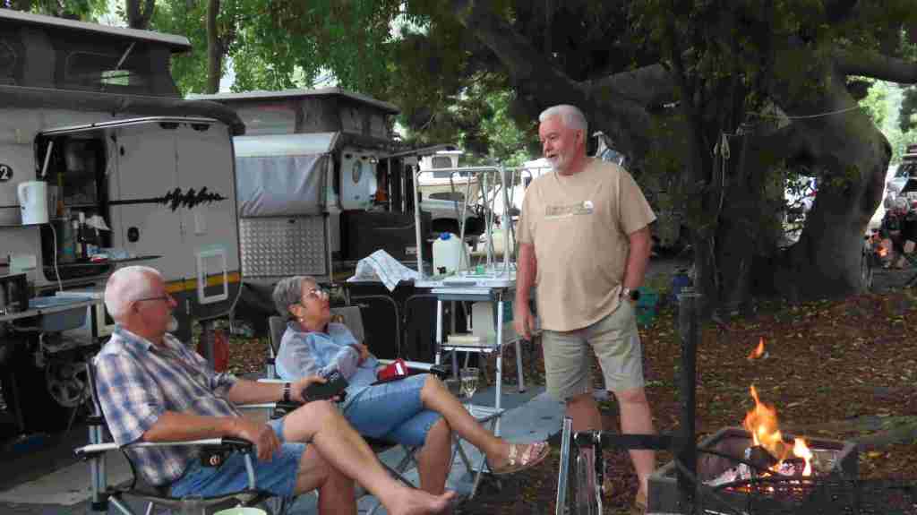 Back at camp, we found ourselves surrounded by twelve Maui motor homes, all part of a French tour group. They’d formed a loose circle, and our little Gecko stood out like a lone ranger. The evening was quiet, punctuated by night sounds and snippets of French conversation drifting through the air.