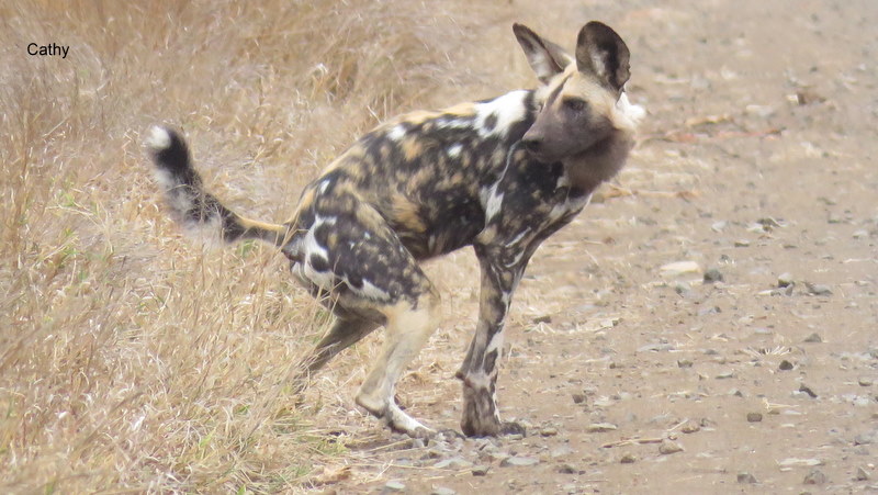 “Wild Dog,” came the reply and pointed but we couldn’t see anything. Other cars were reversing to where they probably were but of course, that was not an option with the caravan in tow so we carried on.