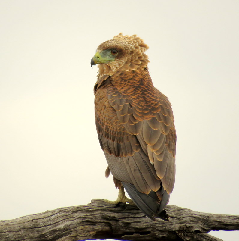 We waited for the impala roadblock to clearThe Earl took a lovely close-upAnother giraffe with a following drongo The giraffe is scratching his neck on a branchMom and Baby ElephantBrown Snake-eagle all puffed up