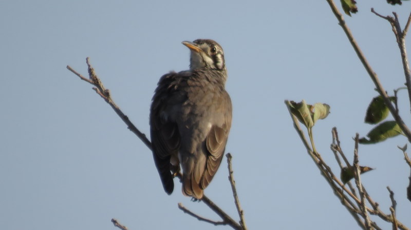 That stripy face looks familiar. Please show us your chest so I can be sure you are who I think you are. Weil, I am a bird. Why shouldn’t I be in a tree even if my name is Groundscraper Thrush
