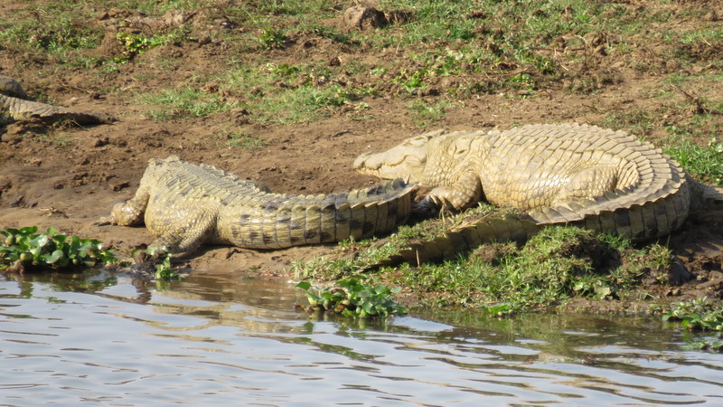 The riverside is busy this morning. There are lots of hippos, crocodiles, waterbuck, herons and Egyptian geese.