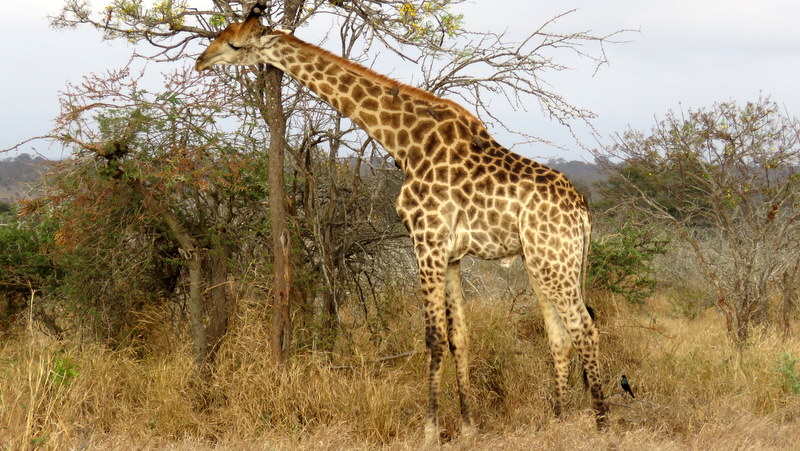Next we came across a gorgeous giraffe walking in the veld and noticed a fork-tailed drongo close at his heels. When he stopped to look at us the drogo waited patiently in a tree. The clever bird knew that Gandolf Giraffe would disturb more grasshoppers for him to catch soon.