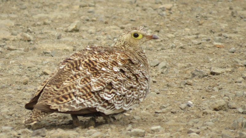 Crossing a weir we found a skulking Black CrakeThere were two adult ground hornbills with an immature on the S90Female Double-banded sandgrouseSwainson’s SpurfowlWarthog escaping the camera