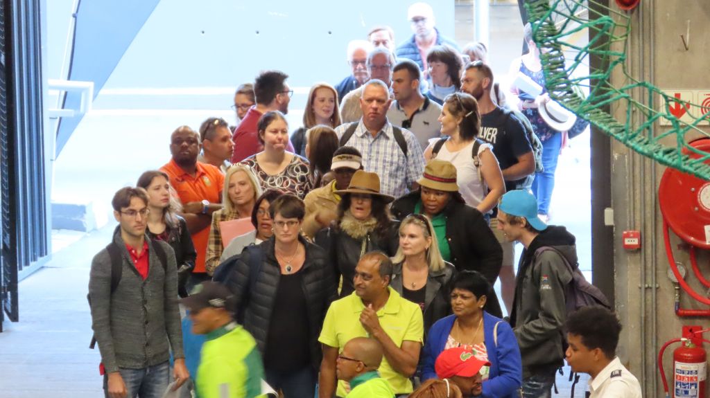 The boys took good care of their grandfather – At the cruise terminal Spot our family in the queue which moved very quicklyFinally on board