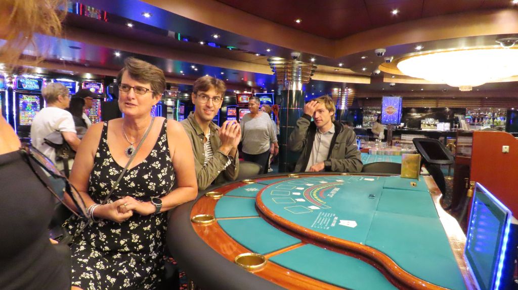 Breakfast – and yes they ate the lot!Fun exploring the ship on Day 1Fun Photo – Josh, Lauren, Lisa {Mother of those big boys!), JayShall we gamble?Now where is that dealer?What were the chances of meeting someone we knew!Josh enjoying the sunJay acting cool!Lauren – our middle child Wendy who is like another daughter to usLaurie – our youngestLisa our oldest – and celebrating her birthday on boardJay our oldest grandson – soon to be seeking adventure in far-off landsJoshua – handsome as everEarl the amazing patriarch of this awesome family of oursMe – a very proud Mother and Grandmother – How awesome that our kids wanted us to cruise with themThese three love their champers!The restaurant staff bade us farewell with song and danceThanks Ibiscus Staff for an awesome timeNot too old to put on the dancing shoesWe should really do this more often