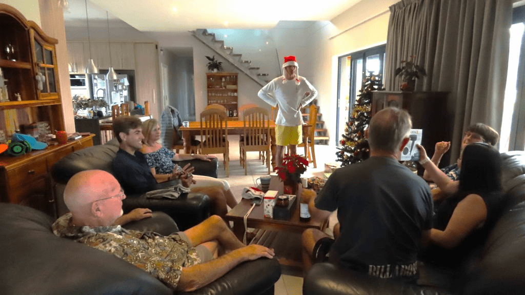 Christmas Past – Reading the Grinch who tried to steal Christmas to the Grandchildren – Clockwise from back – Shannon, Jay, Joshua, Granny, Simon, GrandpaChristmas Past Kokstad 2016 Allan, Earl, Lisa, Laurie, Lauren, Simon, Shannon, Jay, Helen, JoshuaChristmas Present – Lauren, Laurie, Allan, Grandpa, Joshua, LisaSimon always plays Santa and hands out the giftsSimon showing off his Secret Santa giftGranny reading her Secret Santa message