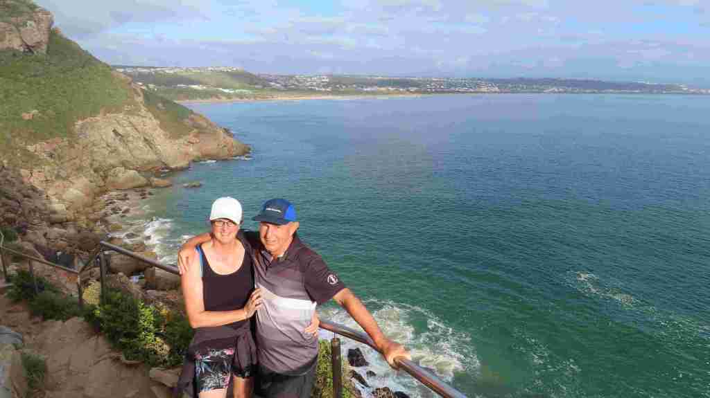 Robberg Hike – Lauren and AllanRobberg Hike – Me – SIL thought my shoes were not good enough – hence the promised Secret Santa gift!Robberg Hike – The Afrikaans word for seal is rob. Robberg means Seal Mountain. Here we are looking down on a rookery of sealsWhat a wonderful life!