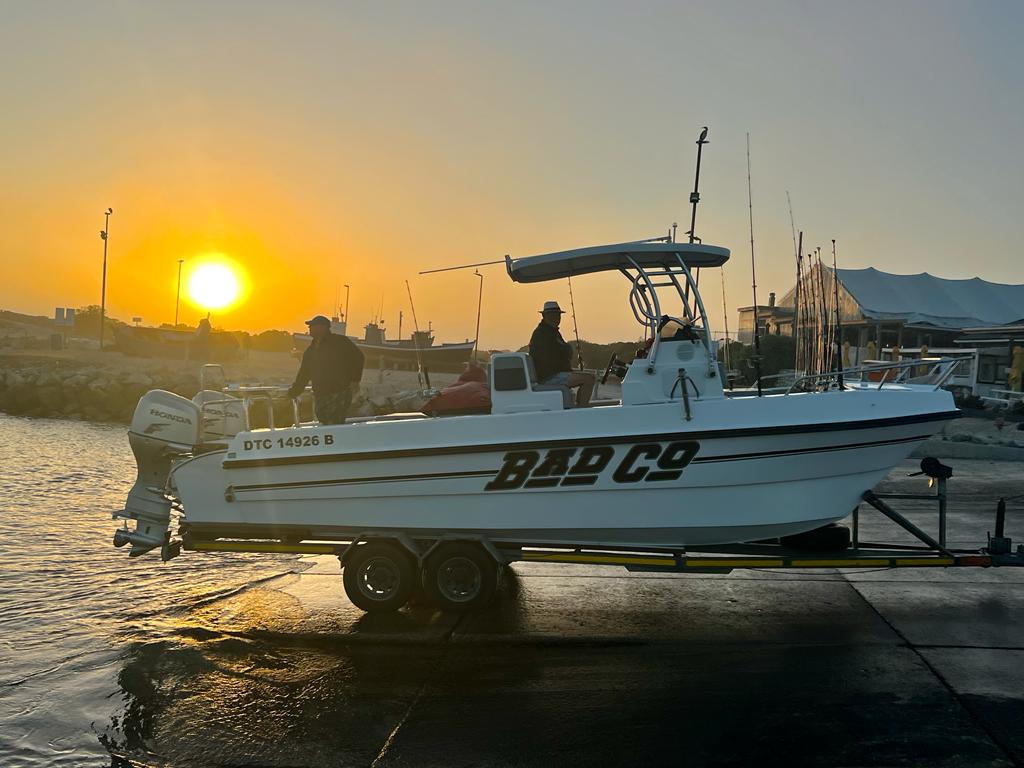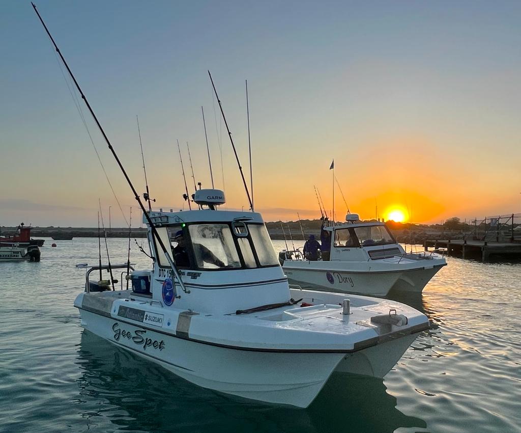 Some of the Fleet in Struisbaai HarbourSunrise and Gee SpotDory looking delightful in the glow of the sunriseEarly start for the good ship, Bad CompanyChris, Dudley, Andrew, Johan and Emil
