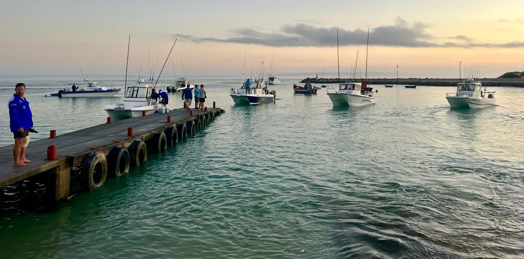Very windy weather and rough seas prevented the boats from fishing on Day One of TOMT so there is not much to report about today’s activities. Dinner, was, of course, served at the club and this evening it was yellowtail and Cape salmon braaied to perfection.