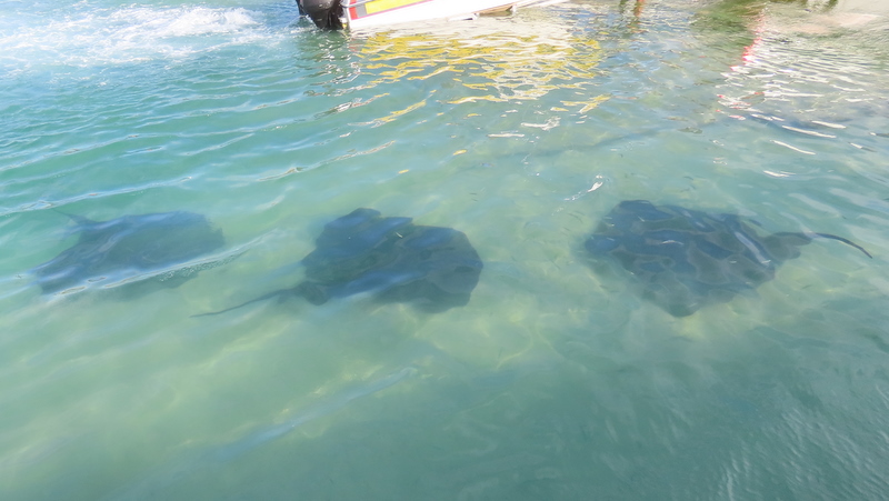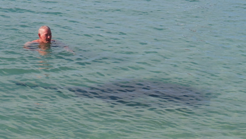 Three visiting stingraysMy friend, Stephen swimming with the ray.