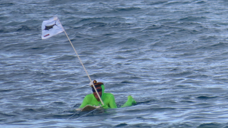 At 14:17 a call came in from Maverick, a new boat in this tournament. Jaen van den Berg was vas with a striped marlin. He fought it till 15:01 before safely releasing it. It was Jean’s first marlin. Veels Geluk Jaen!