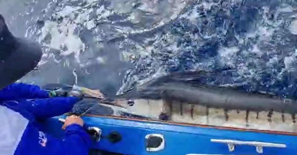 Finally, the marlin was brought next to the boat and the hook was removed. We also tagged him