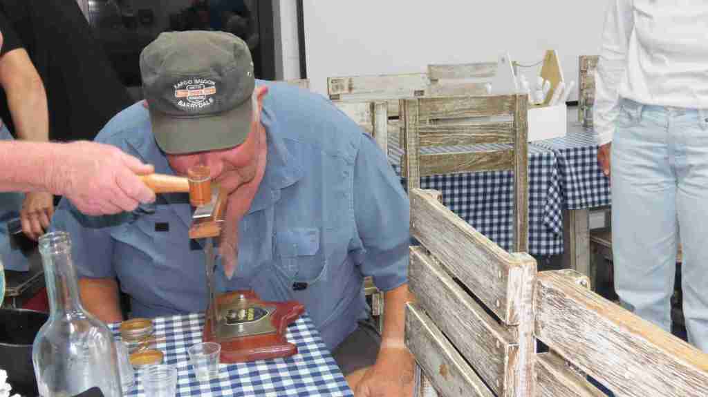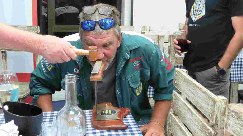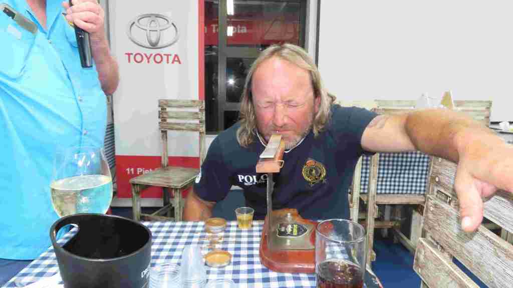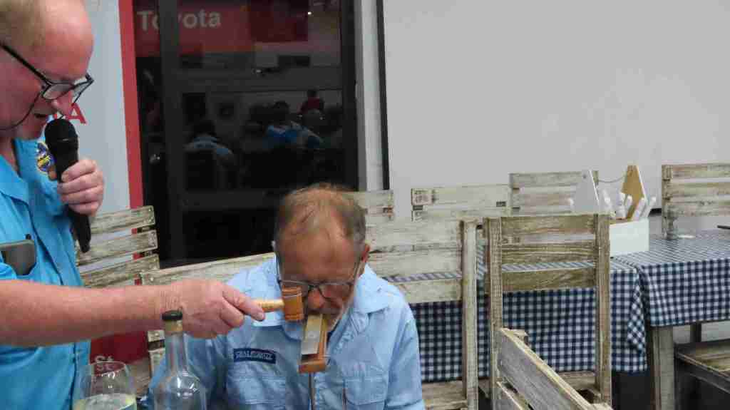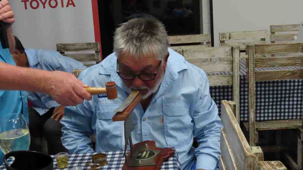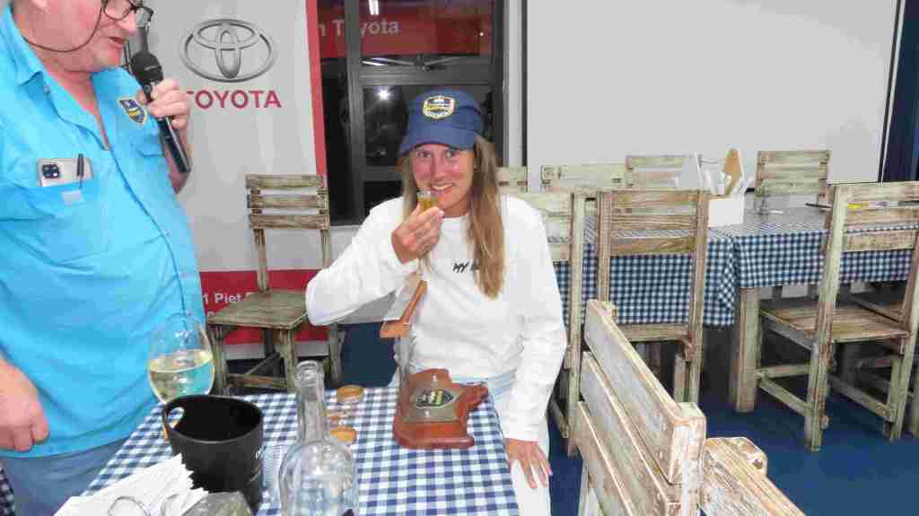 Andrew from Marlin Control presented the prizes to today’s winners of the Calcutta and also metered out ‘straf dops’ and snuff to those who committed misdemeanors!