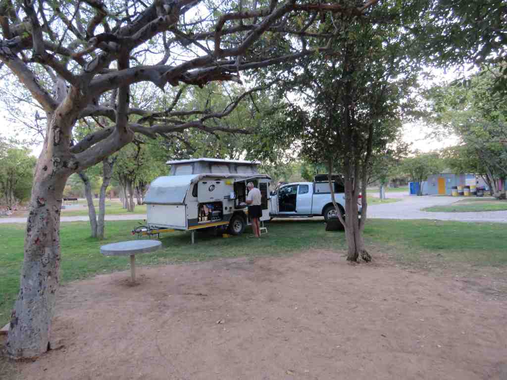 We arrived safely at Mukolo and were met by the owners Hennie and Veronica. We were shown to our campsite, #3, and were immediately struck by how much this camp reminded us of Tsendze at Kruger. Each campsite was carved out of the bush, with lovely big trees shading the site. All the sites are private and have their own ablutions. The camp is served by solar energy, so there was power to the van and car but we were asked not to use an electric kettle, or anything similar that drew a large current.