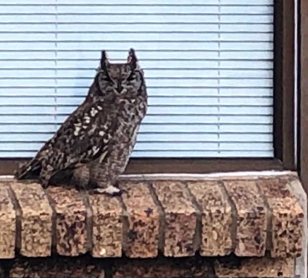 We saw the owl that visited our garden a few weeks ago.  This time he chose a house down the road from us.   We invited him to come back but he hasn’t turned up yet!