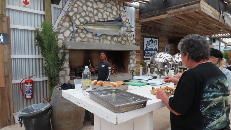 Feeling fortified with good coffee and food we continued. The clouds cleared and the rain stopped but it was still quite chilly when we stopped at Picketburg to refuel and then at Kardoesie to buy some biltong. We decided not to have refreshments at the restaurant as we were almost at our destination. By the time we arrived at The Baths, Citrusdal the weather had warmed up a tad. Our campsite, number 22, is spacious and takes the two caravans easily. After setting up and having a cup of tea, we headed for the hot pool. It was awesome wallowing in the healing spring water. Afterward, we decided to pop into the restaurant to book a table for dinner. It’s a good thing we did as we were informed that they were closing at six and were only doing takeaway meals till then. It was already five o’clock so we sat down for a G&T and ordered chicken salad to go. Had we come at six we would have been too late and as we had nothing defrosted it could have ended badly!
