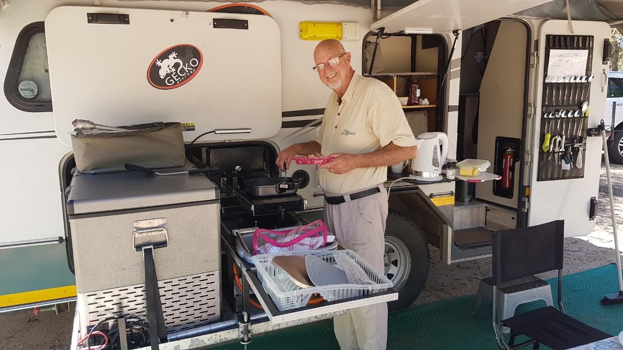 Then I noticed monkeys trying to get into my caravan. I ran to chase them.  All but one scattered but the leader had no fear and ran at me. “Help!” I yelled and turned tail and scarpered.  Julia and Jan came with catapults and shot at him. Thankfully he turned and ran up a tree! Don’t laugh! It wasn’t funny! Lol.